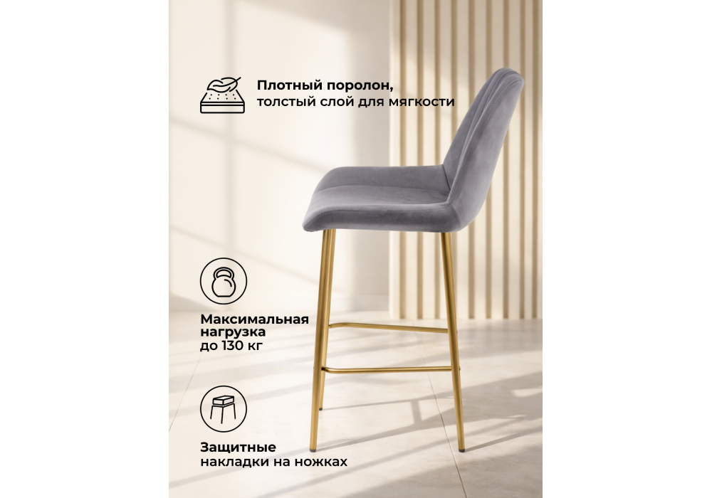 Материал каркаса - металл; Материал сиденья - велюр; Материал обивки - велюр; Ширина - 49; Глубина - 57; Высота - 102; Ширина сиденья - 47; Глубина сиденья - 41; Высота сиденья - 63;