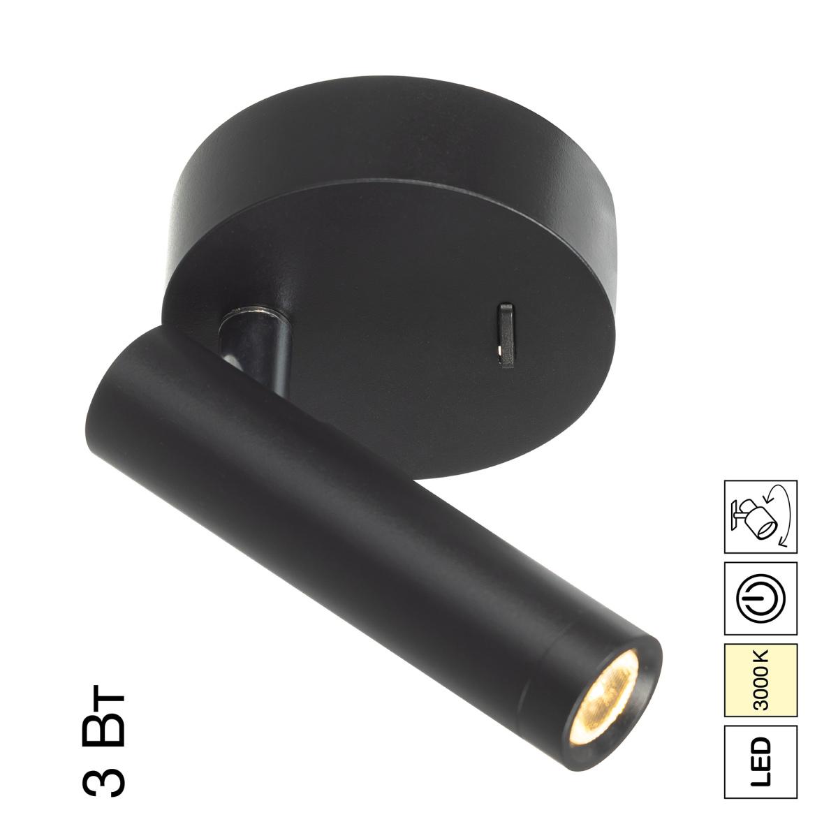 Каркас изделия — металлический, популярного черного цвета, основание круглой формы, диаметром 78мм. LED-модуль цилиндрической формы, со встроенным светодиодом и рассеивателем из оптического полимера, имеет поворотное крепление, позволяющее регулировать направление светового потока.