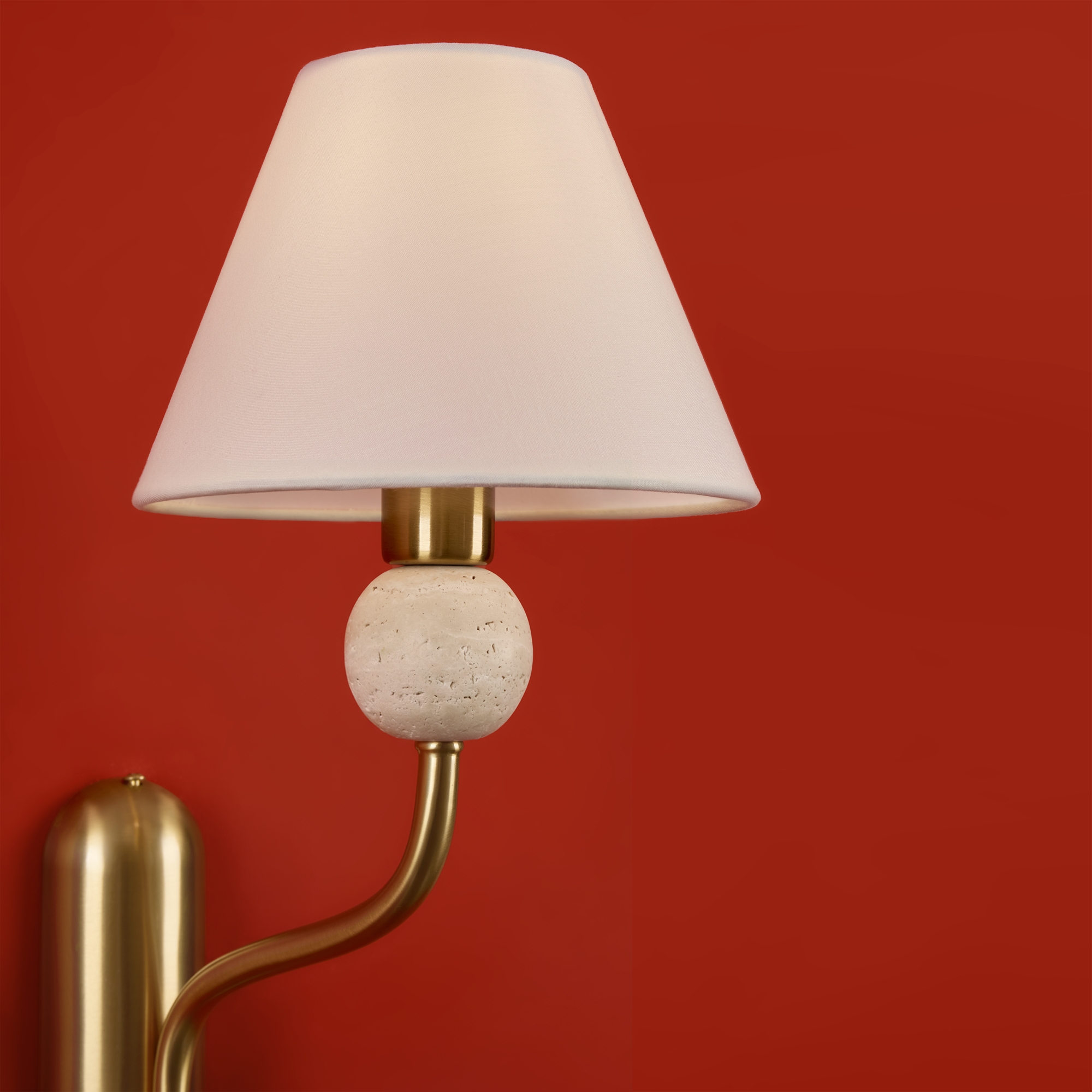 Арматура - металл в цвете латунь. Тканевые абажуры, травертиновые элементы. Лампы E14 (в комплекте). Серия состоит из люстры c 5 плафонами и бра. Трендовое сочетание в классическом стиле.