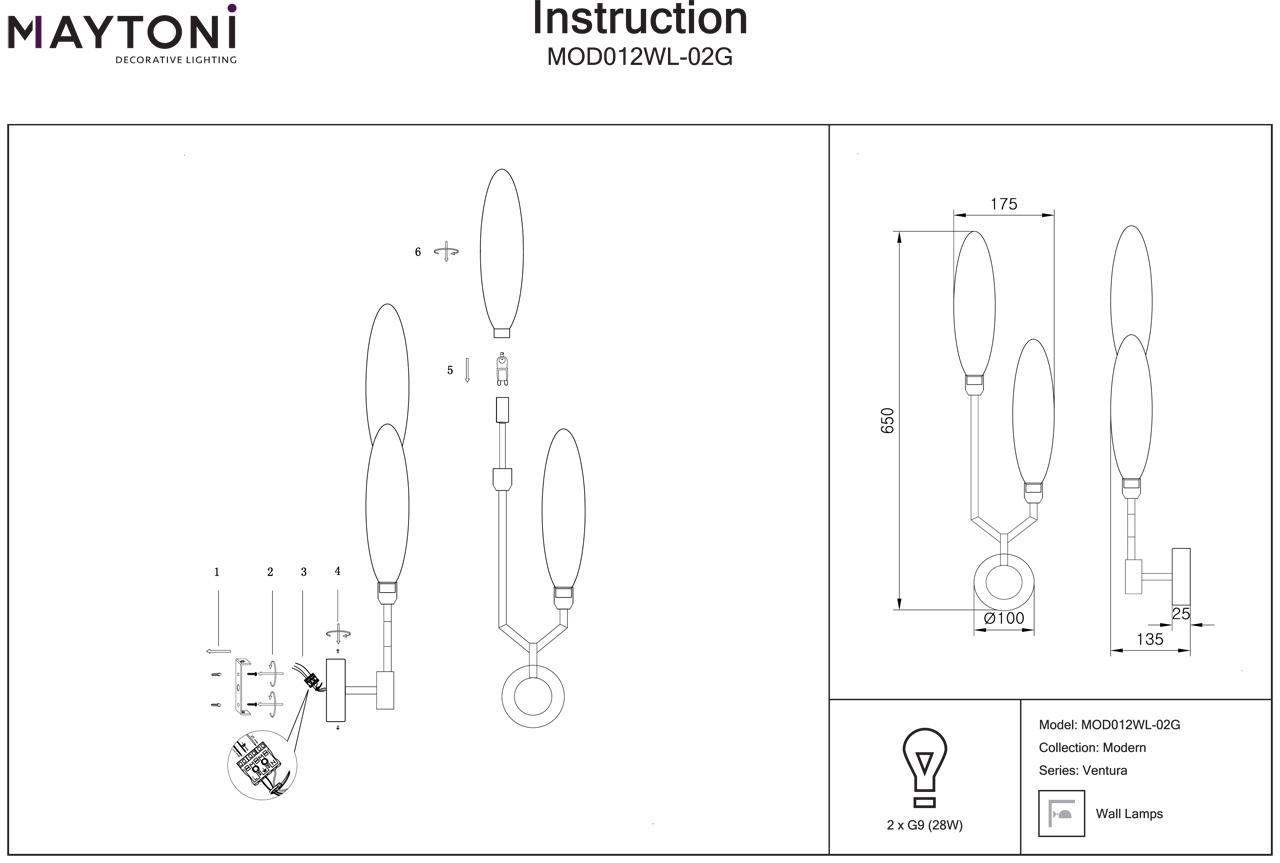 Купить "Бра Maytoni Ventura MOD012WL-02G"