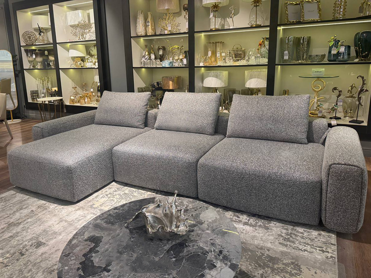 Трехместный диван Turin с канапе — словно монумент в мягкой обволакиваемой форме. Его ткань с тактильной фактурой и объёмные подушки приглашают к королевскому отдыху. Механизм работает плавно и надежно – когда необходимо, диван становится комфортным спальным местом. Это раскладной диван, в котором функция не мешает красоте. Дизайнерский диван собственного производства – где каждая деталь говорит о безупречном вкусе – доступен под заказ в ткани на ваш выбор. Диван трехместный TURIN с канапе и механизмом трансформации. Диван на фото выполнен в ткани из коллекции Garda Decor - рогожка Santo1606. Механизм трансформации "ТИК-ТАК" (шагающая Еврокнижка), механизм канапе - МЕЙС. Габариты дивана: ширина - 355см, глубина - 163,5см, высота - 68см. Глубина посадочного места - 86см, глубина канапе - 134см, высота сиденья - 46см. Размер спального места: 150*300см. В комплект дивана входит наматрасник. Опоры - пластик (черные) 15мм.