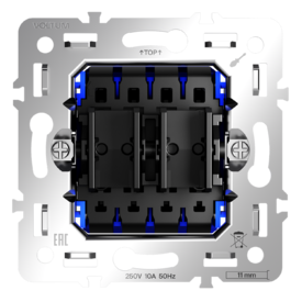 Проходной переключатель встраиваемый двухклавишный с подсветкой 10А Voltum S70 VLS020407 (графит)