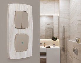 выключатель двухклавишный проходной с подсветкой 3200K Ambrella Volt Quant ALFA MA124030