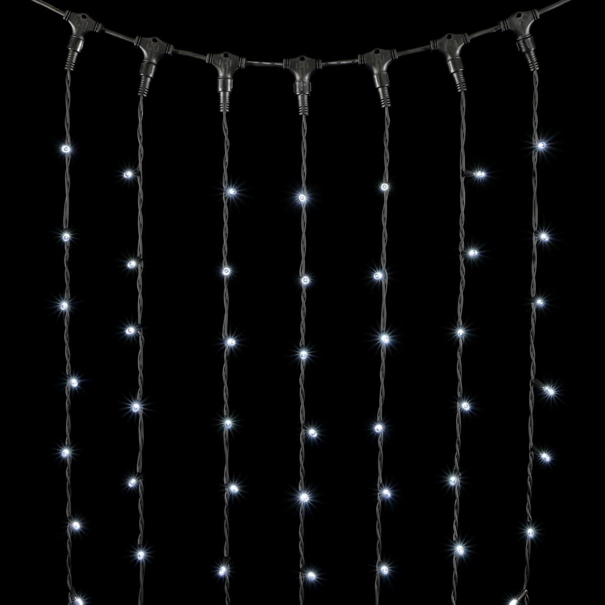 Купить "Гирлянда Занавес 2 x 2 м Белый 220В, 400 LED, Провод Черный Каучук, IP65 LTC LL402-1-2W"