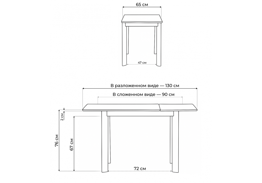 - Длина стола в разложенном виде: 1300