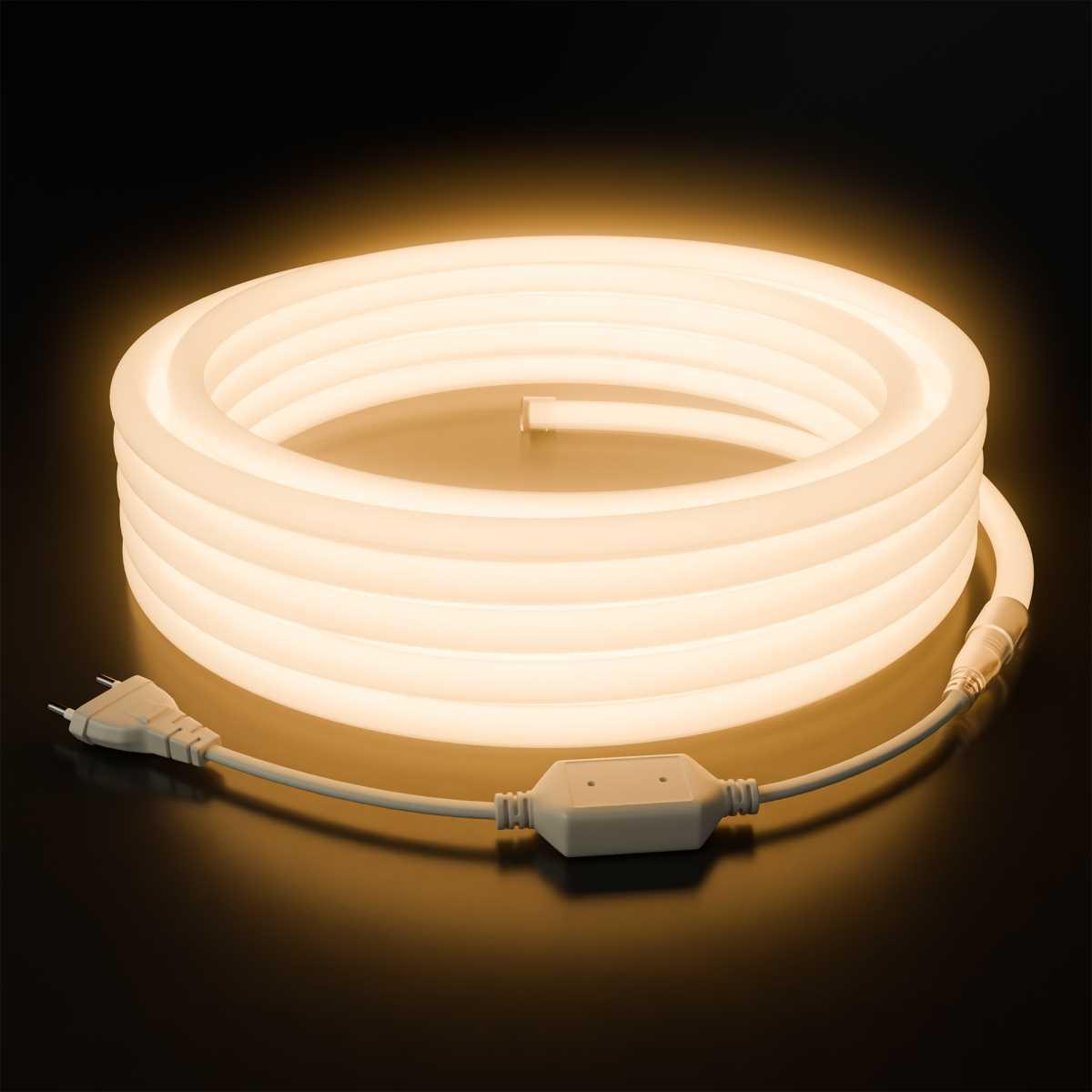 Купить "Комплект светодиодного НЕОНа Apeyron 220В, 6Вт/м, 300лм/м, 3000К, smd 2835, 144д/м, круглый d=14, 10м, IP65 (сетевой шнур, заглушка, крепеж - 10шт) 10"