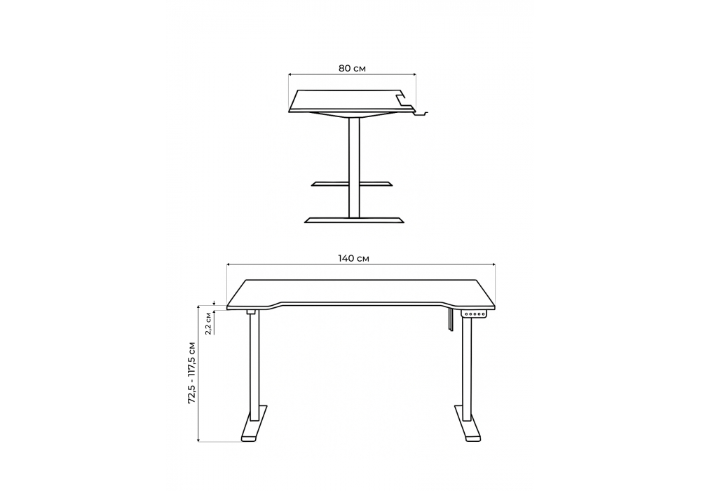 Материал каркаса - металл; Цвет ножек - белый; Ширина - 80; Высота - 72,5 - 117,5; Длина - 140;