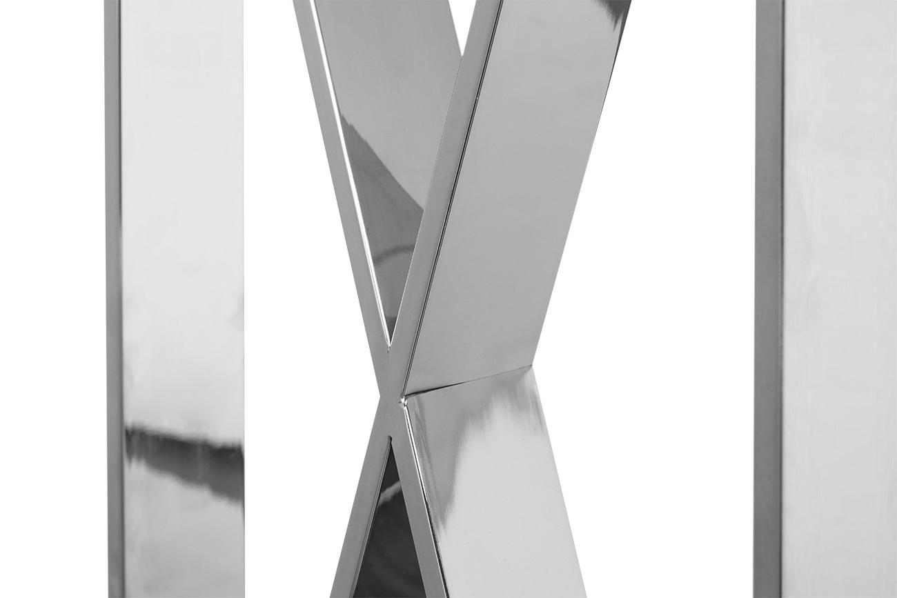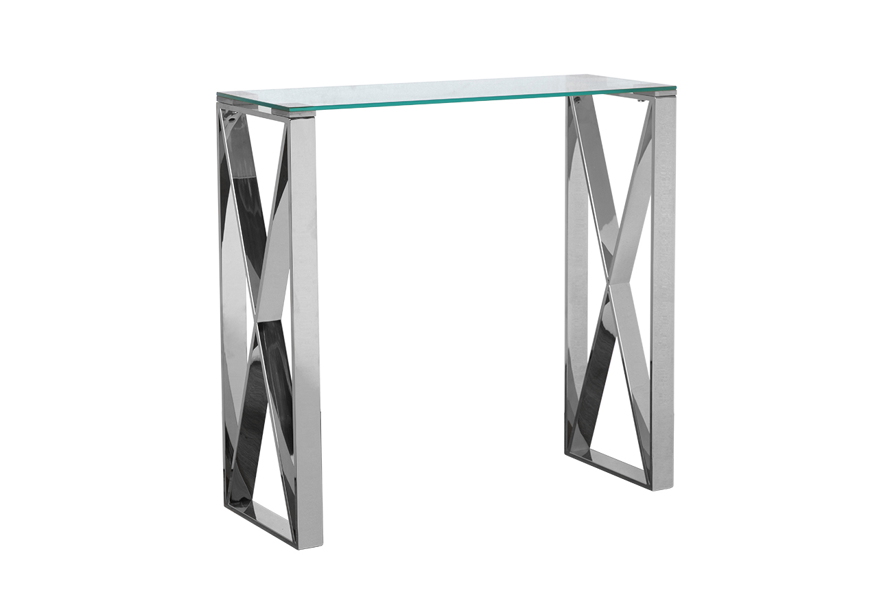Если вы предпочитаете стиль модерн или нео-классика, то вам понравится представленная консоль в современном стиле. Разработанная талантливыми дизайнерами, эта вещь словно притягивает к себе восхищенные взгляды. Такая консоль со стеклом украсит вашу гостиную или любую другую комнату. Вещь предельно компактная, а прозрачная столешница и тонкие грани металлического основания еще более облегчают конструкцию. Поэтому изделие выглядит практически невесомым и очень изящным. Данная хромированная консоль может быть использована как подставка для разных мелочей – сувениров, фоторамок, засушенных букетов цветов. Однако она вполне красиво смотрится и как самодостаточный предмет интерьера.