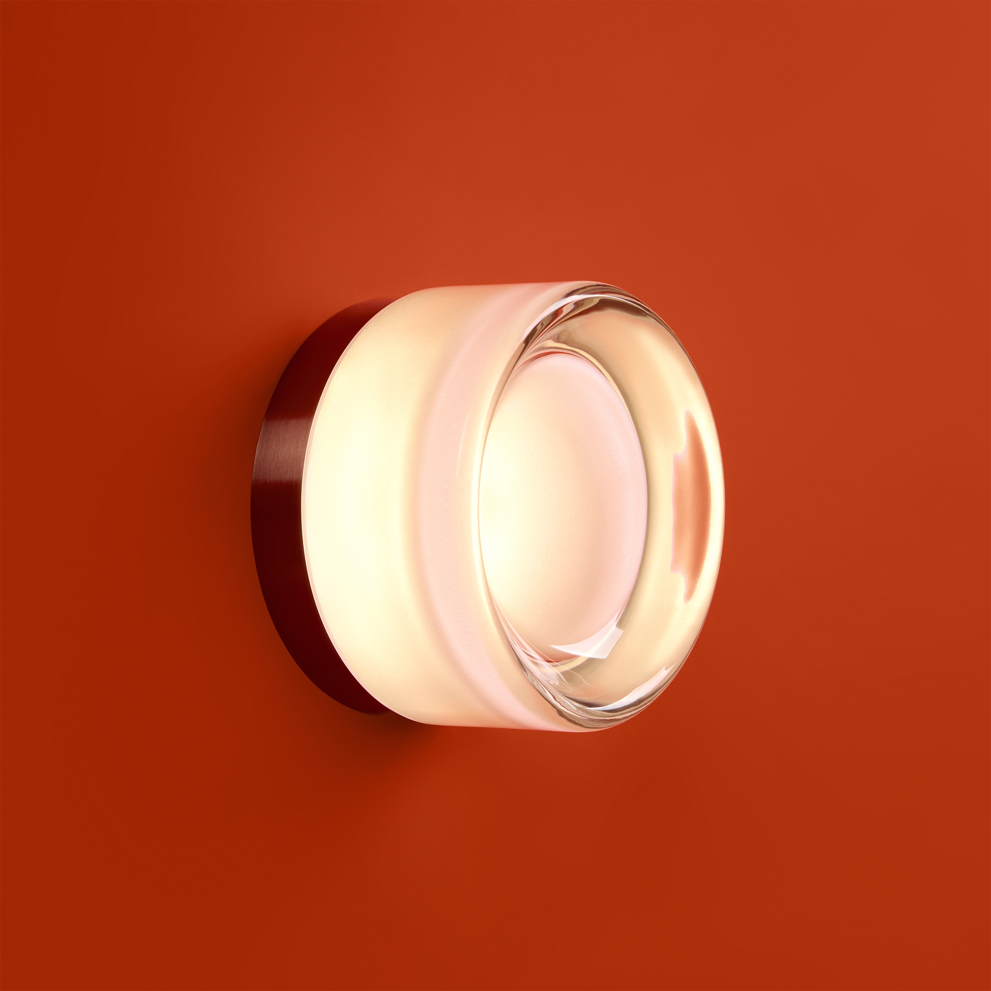 Металлическая арматура в цвете никель в трех рельефных основаниях. Плафоны, выполненные в приглушенно пшеничном и янтарном оттенках, доступны в двух размерах. LED источник света 2400К/2550К/3000K.