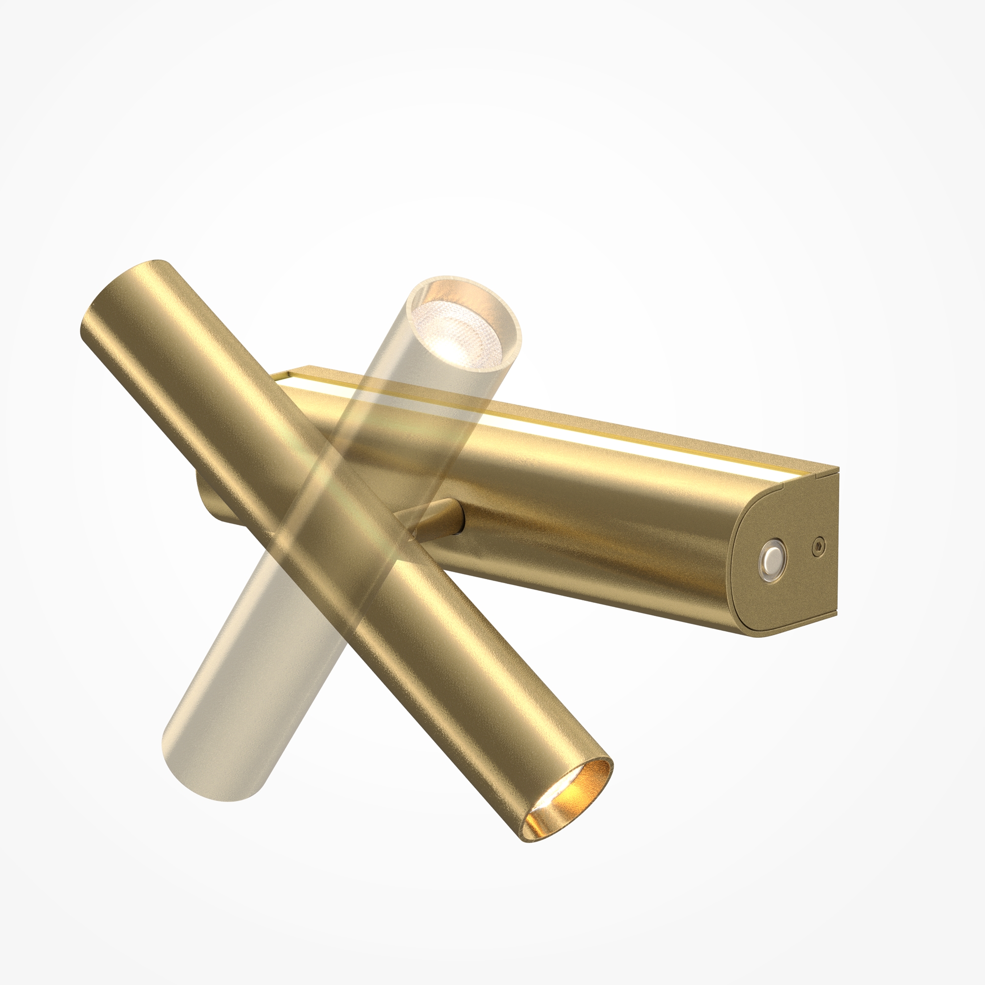 Футуристичный цилиндрический дизайн. Создает как общее заливающее освещение, так и точечную подсветку. Арматура: алюминий; цвет: черный, латунь. Два независимых LED-источника 3000K: скрытая лента с матовым рассеивателем для переотраженного света и поворотный спот для направленного освещения. Углы поворота спота: 350° по горизонтали и 90° по вертикали. Сенсорное управление на корпусе с раздельным включением и диммированием. Для современных интерьеров гостиных, кабинетов и спален.