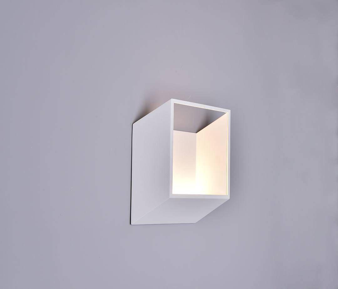 Белый настенный светодиодный светильник в форме куба.