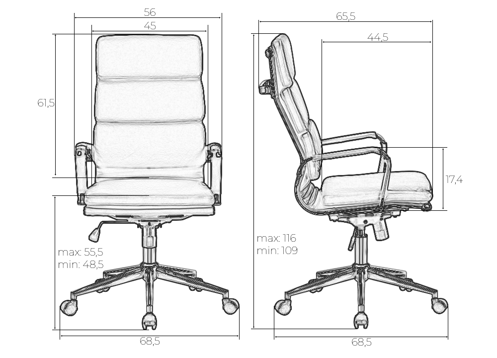 - Высота сиденья max: 555