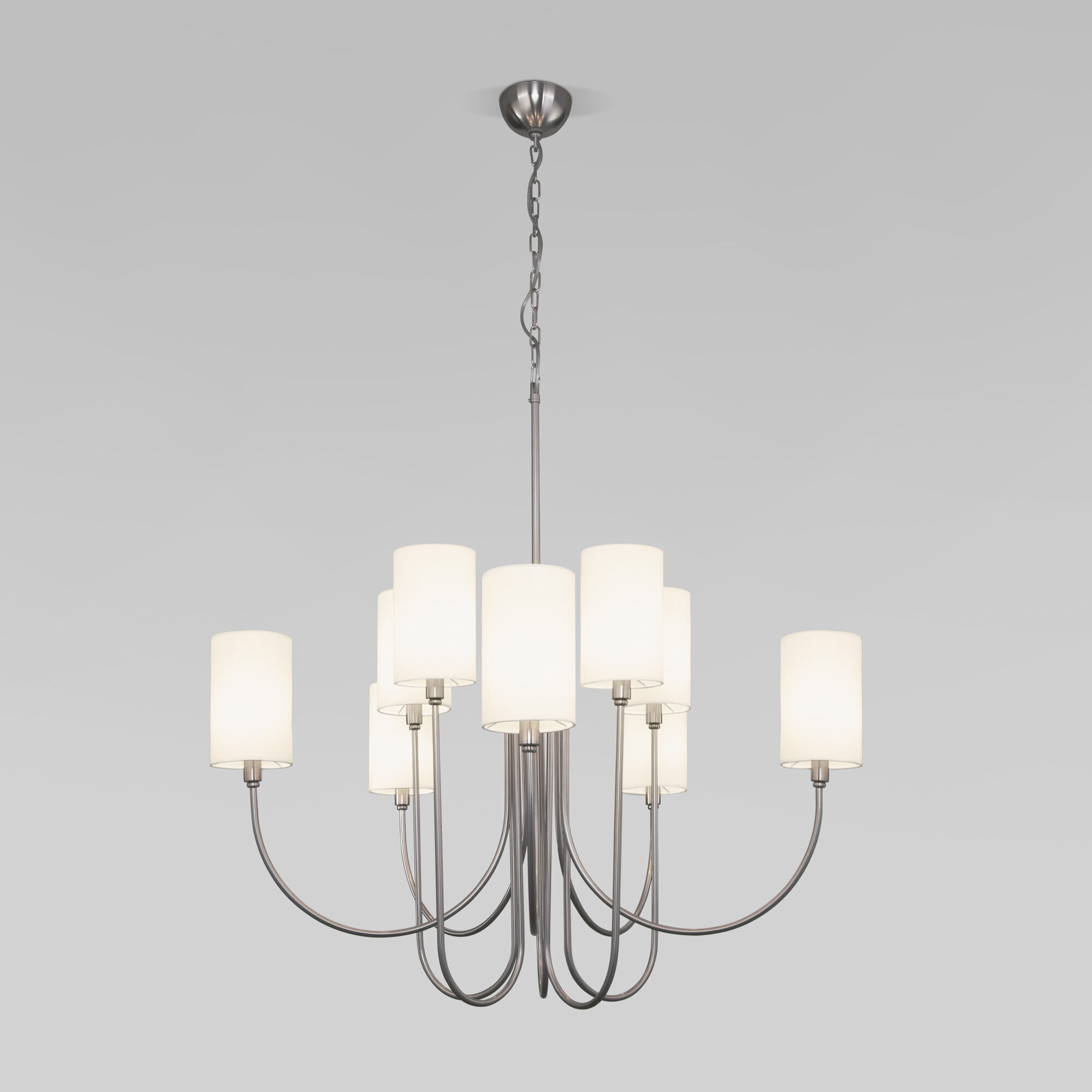 Подвесная люстра с тканевыми абажурами 60164/10 никель предназначена для создания основного освещения в современных и классических интерьерах, подходит для различных типов помещений: гостиная, спальня; и рассчитана на площадь освещения 18 м².