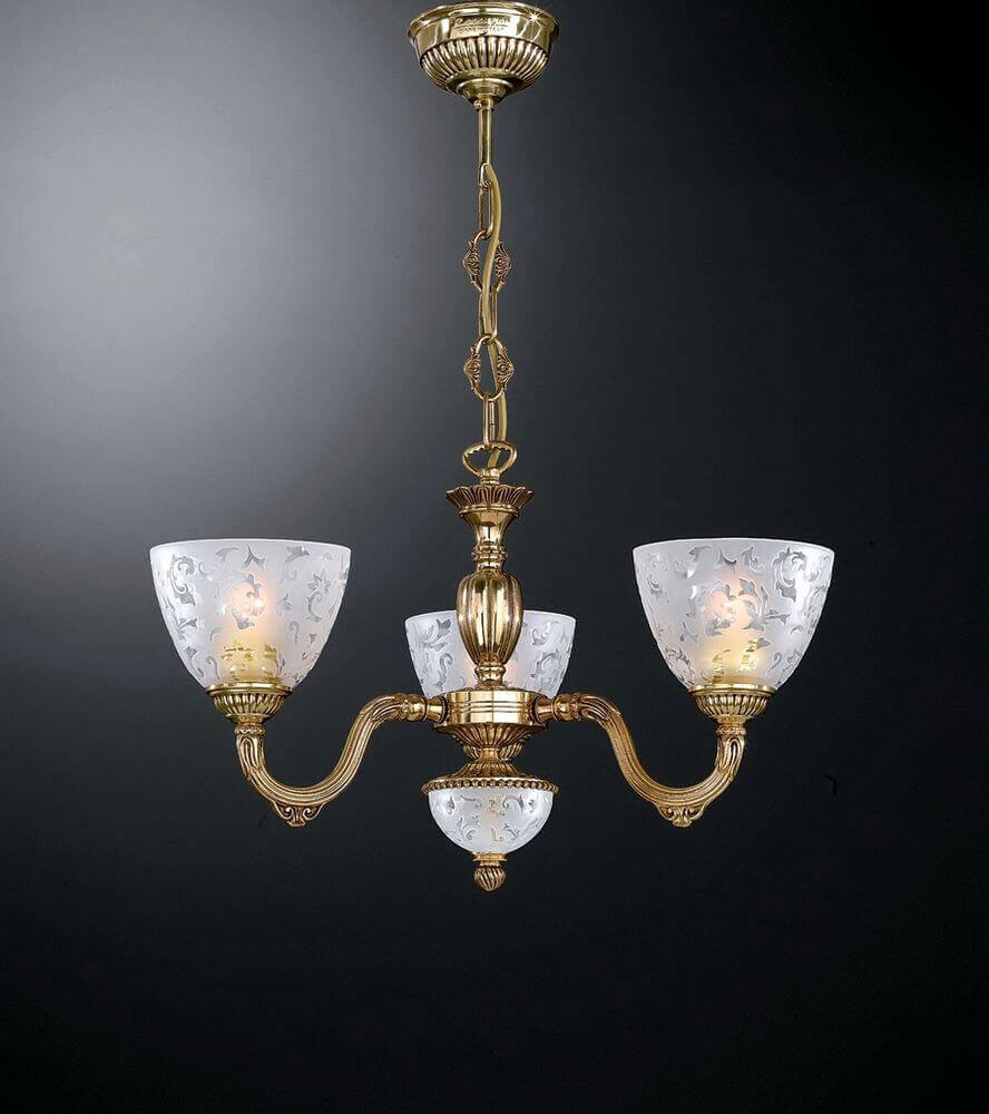 Подвесная люстра Reccagni Angelo L 6352/3 Итальянского производсва – уникальное сочетание высокого качества и удивительных фактур. Этот светильник Классического стиля хорошо подойдет Для спальни и придаст помещению мягкий и приятный свет. Плафоны белые из стекла. Арматура золотая из металла. Кол-во ламп - 3шт. Общая мощность 180W
