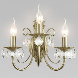 Светильник, вдохновлённый дворцовыми интерьерами: латунная арматура с утончёнными вензелями хранит память о вековых традициях мастерства, а бесцветный хрусталь преломляет свет, создавая эффект сияющих звёзд.