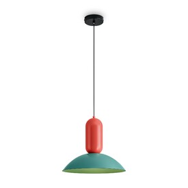 Арматура - чёрный металл.Каждый подвесной светильник окрашен в 2 цвета: серо-бежевый и жемчужно-белый, каменно-серый и белый, белый и каменно-серый. з новинки в сочетниях новых оттенков - чисто красный и мята бирюзовая.