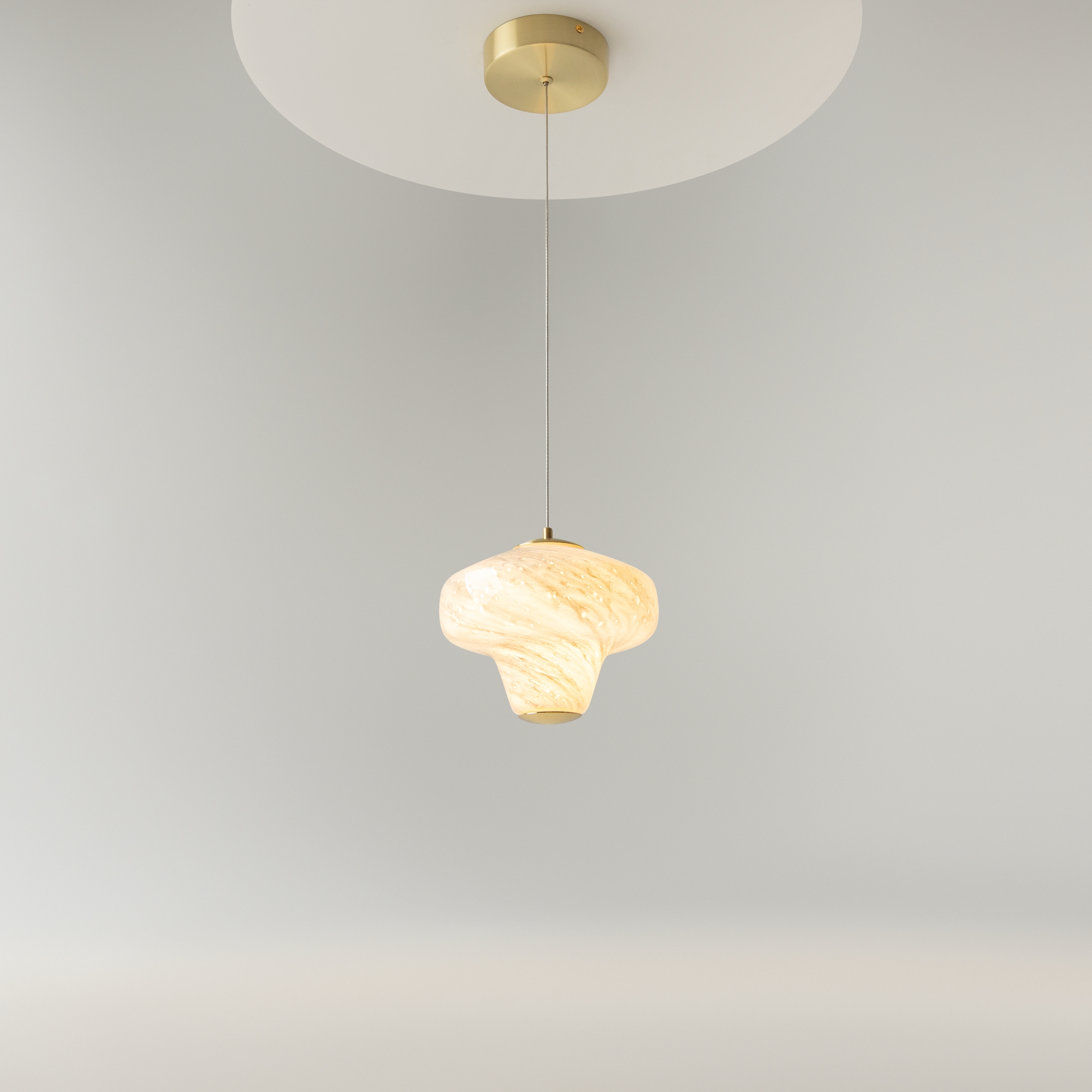 Серия подвесных светильников Sirocco – это история о совместном путешествии двух стихий. Форма стеклянного плафона напоминает вихрь воздушных потоков, а рисунок – танец песчинок. Серия представлена в двух цветах стекла: белом и янтарном, металлическая арматура в цвете сатинированной латуни. Встроенный LED-источник (3000K). Светильники Sirocco можно устанавливать в качестве одиночных акцентов или формировать композиции, так как молочный и оранжевый оттенки гармонично сочетаются друг с другом.