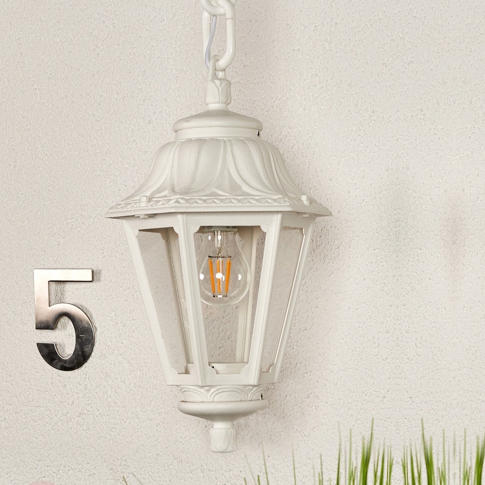 Подвесной уличный светильник FUMAGALLI серии ANNA, модель ANNA/SICHEM. Подвесной уличный светильникANNA на цепочке SICHEM. Используются для архитектурного освещения в стиле "классика". Место установки уличных светильников - арки, галереи, садовые беседки, веранды, лоджии, балконы и другие места где требуется и возможна установка подвесных фонарей. Изготовлены в Италии, по уникальным технологиям "FUMAGALLI" из современного композитного полимера RESIN. Этот материал в 5 раз прочнее металла, не ржавеет, не окисляется, не выгорает на солнце, его не нужно красить. Все светильники пыле-влаго защищены по стандарту IP55 (защита от пыли, защита от струй воды, падающих под любым углом). Рассеиватель выполнен из антивандального, не мутнеющего и не горючего PMMA (ПолиМетилМетаАкрилат). Срок службы светильника - не менее 20 лет. Температура использования от -60 до +90. В серии ANNA есть фонари в настенном (BISSO/ANNA, PORPORA/ANNA) подвесном (SICHEM/ANNA, SICHEM/ANNA 3L) и наземном исполнении (IAFAET.R/ANNA, ALOE.R/ANNA, ARTU/ANNA, GIGI/ANNA, RICU/ANNA, RICU/ISSO/ANNA 1L, RICU/ISSO/ANNA 2L, RICU/ISSO/ANNA 3L) со столбами разной высоты, с разным количеством и конфигурацией голов. Консоли настенных фонарей и кронштейны светильников на столбах освщения могут устанавливаться вверх/вниз. Столбы выше 150 см имеют в основе мощную стальную трубу с двойной оцинковкой. При заказе требуется выбрать цвет корпуса, цвет плафона и тип патрона (Е-27 или LED GX-53). Возможен светодиодный вариант. По стилю и дизайну серия уличных светильников ANNA похожа на светильники среднего размера серии RUT и на светильники большого размера серии NOEMI. По размеру ANNA относится к малым светильникам как серия SABA и GLOBE 250.
