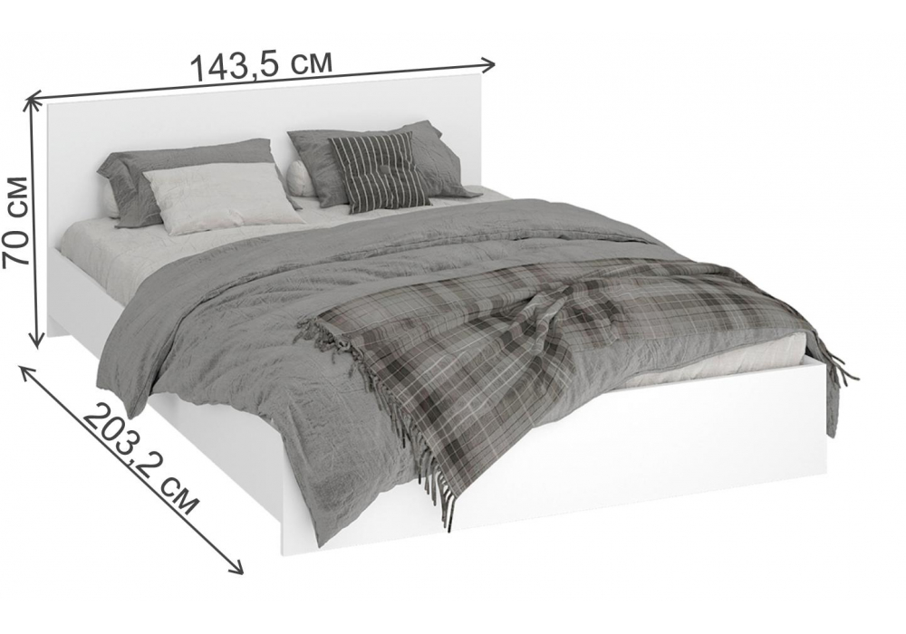 Материал каркаса - ЛДСП; Материал ортопедического основания - настил; Ширина - 143,5; Размер спального места - 140 x 200 см; Длина кровати - 203,2; Ширина кровати - 143,5; Высота изголовья - 70; Длина - 203,2;