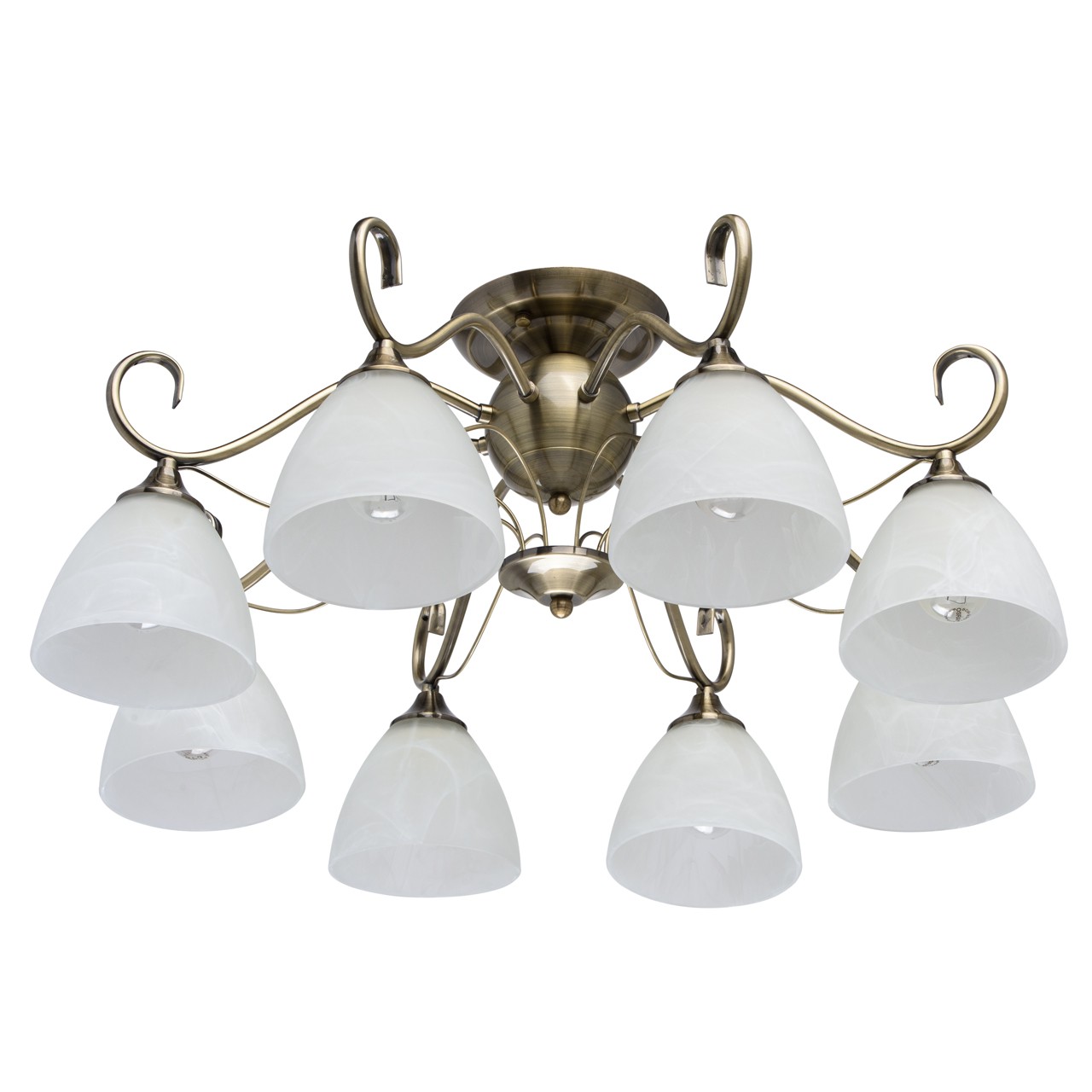 Основание: металл, гальванизирован в цвет античной бронзы.Плафоны: алебастровое стекло, отлито в форму; матирование.