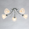 Металлическое основание светильника гальванизировано в цвет хрома. Светильник декорирован плафонами из алебастрового стекла.