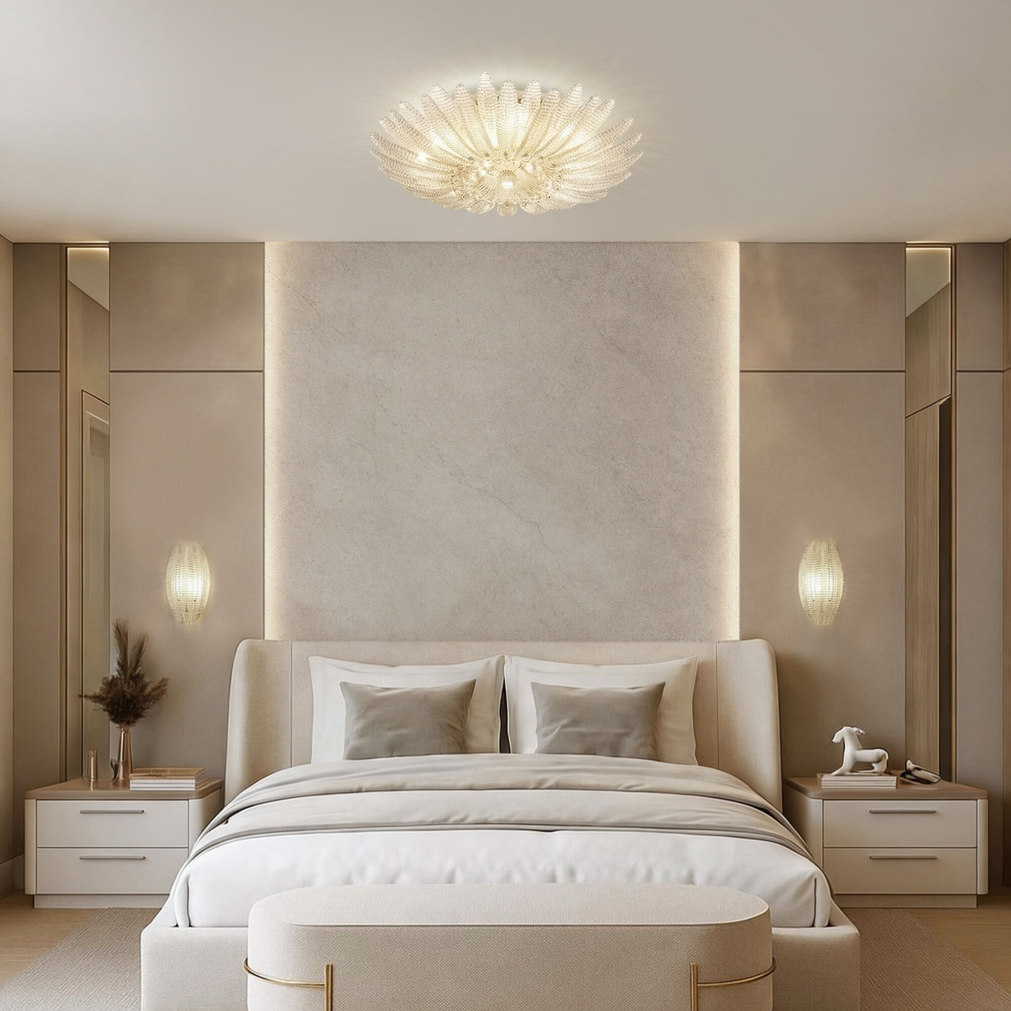 Потолочный светильник в форме цветка — изящное сияние в вашем интерьере. Светильник 101015/10 — не просто источник света, а настоящее украшение пространства. Рельефное стекло с алмазной крошкой создаёт эффект драгоценного цветка, застывшего в вечном цветении. В лучах света он оживает, наполняя комнату атмосферой утончённой роскоши и волшебства.