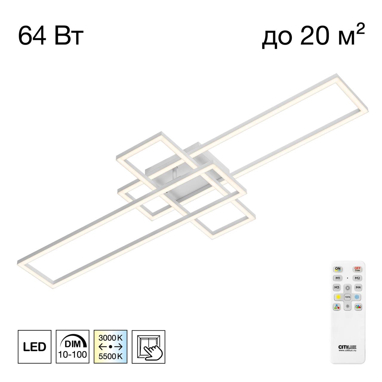 Купить "Потолочная люстра с пультом ДУ Citilux KUBIT CL201130"