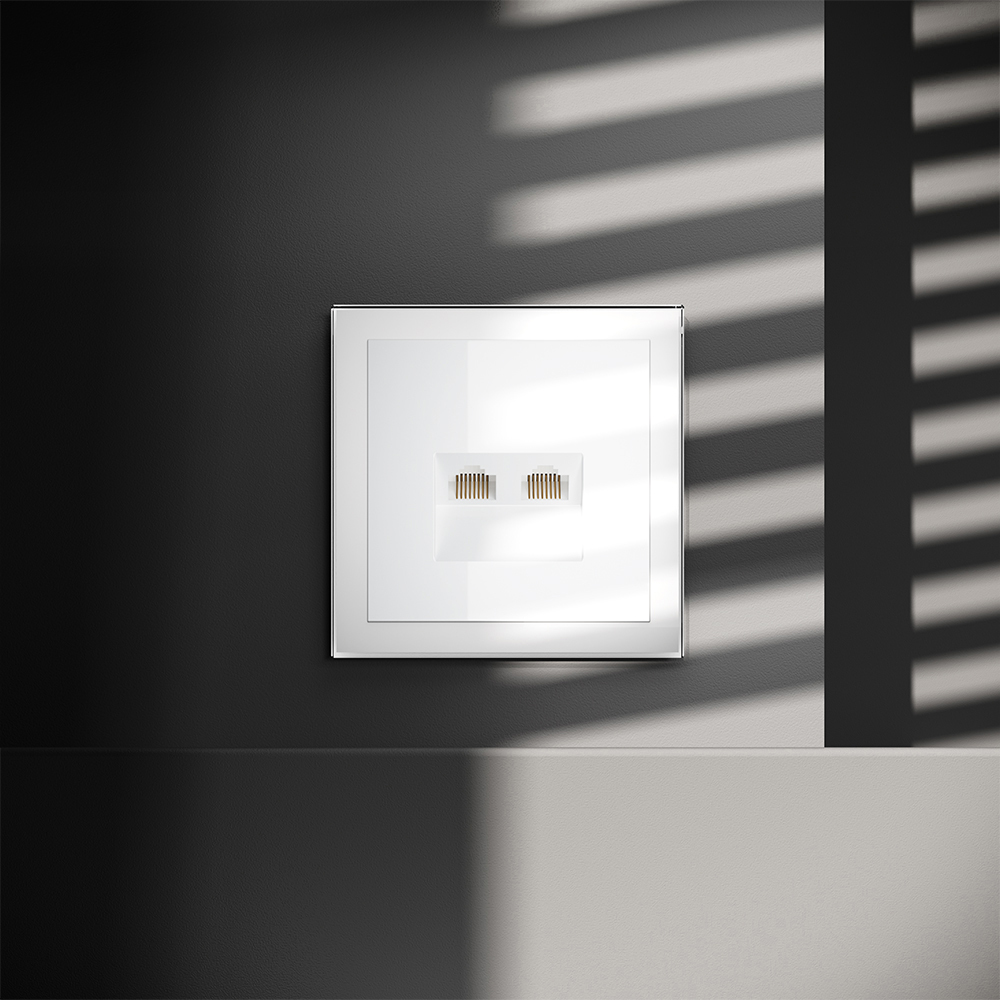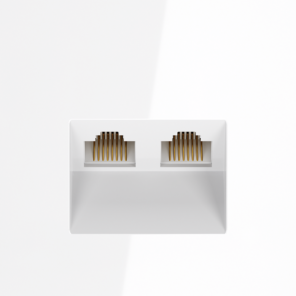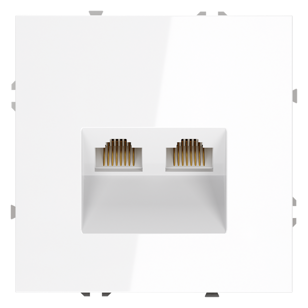 Купить "Розетка компьютерная встраиваемая двойная RJ45+RJ45 кат.6 Voltum S70 VLS060201 (белый глянцевый)"