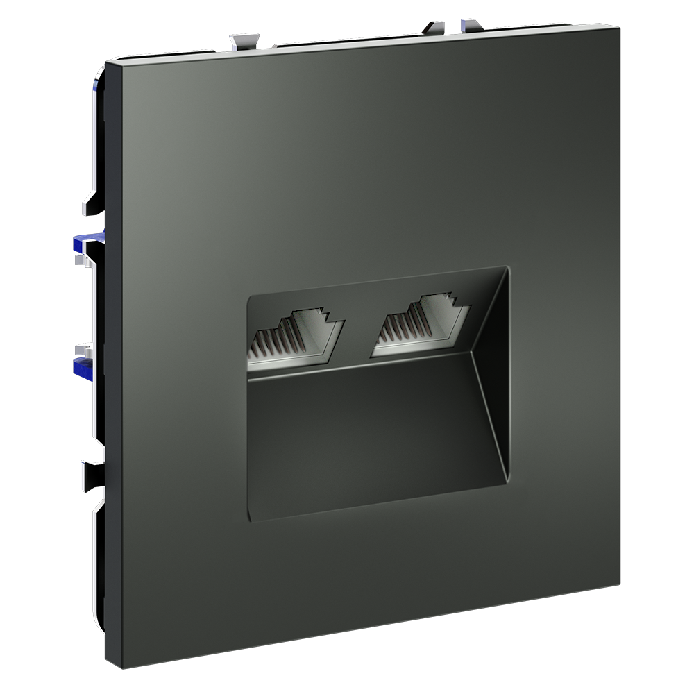 Купить "Розетка компьютерная встраиваемая двойная RJ45+RJ45 кат.6 Voltum S70 VLS060206 (титан)"