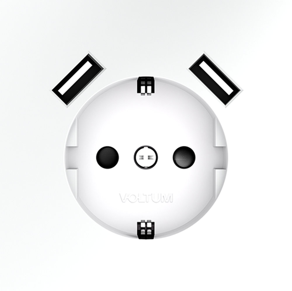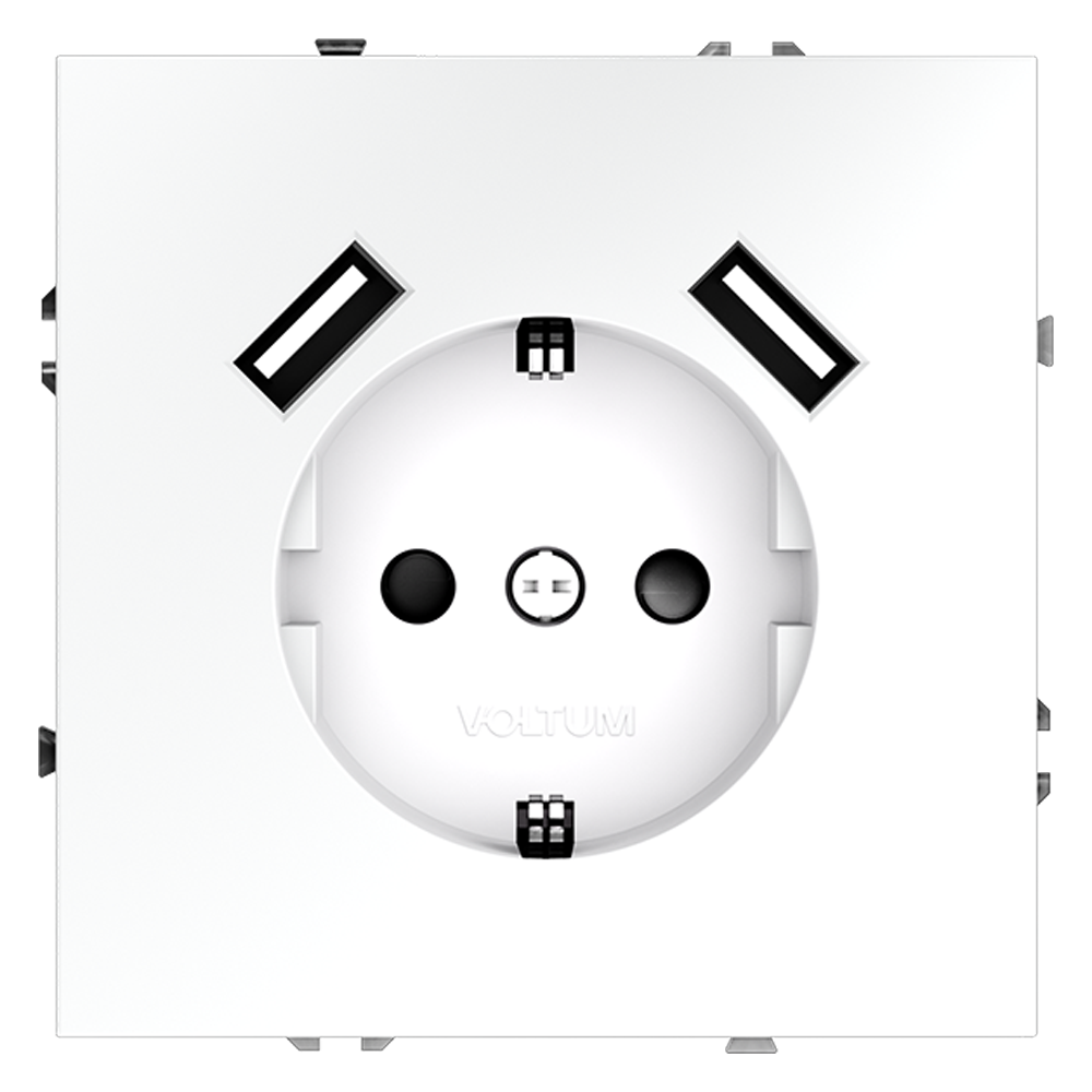 Купить "Розетка встраиваемая с заземлением и защитными шторками, 16А, с USB, A+A Voltum S70 VLS040402 (белый матовый)"