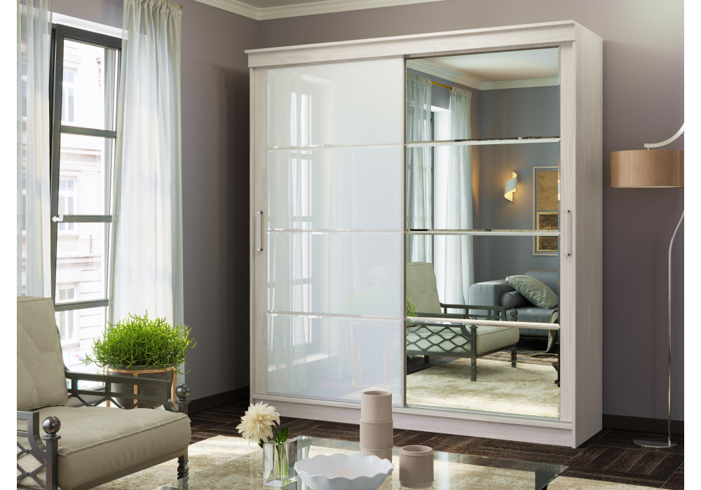 Купить "Шкаф-купе Woodville Москана-2 анкор светлый / зеркало / лакобель белый 614770"
