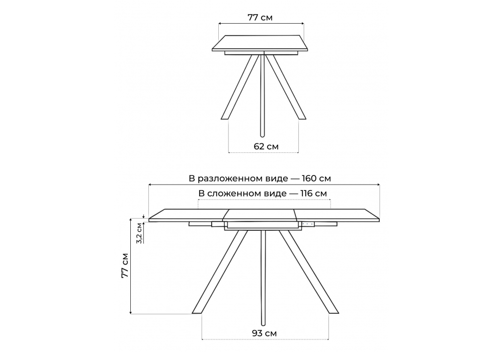 - Длина стола в разложенном виде: 1600