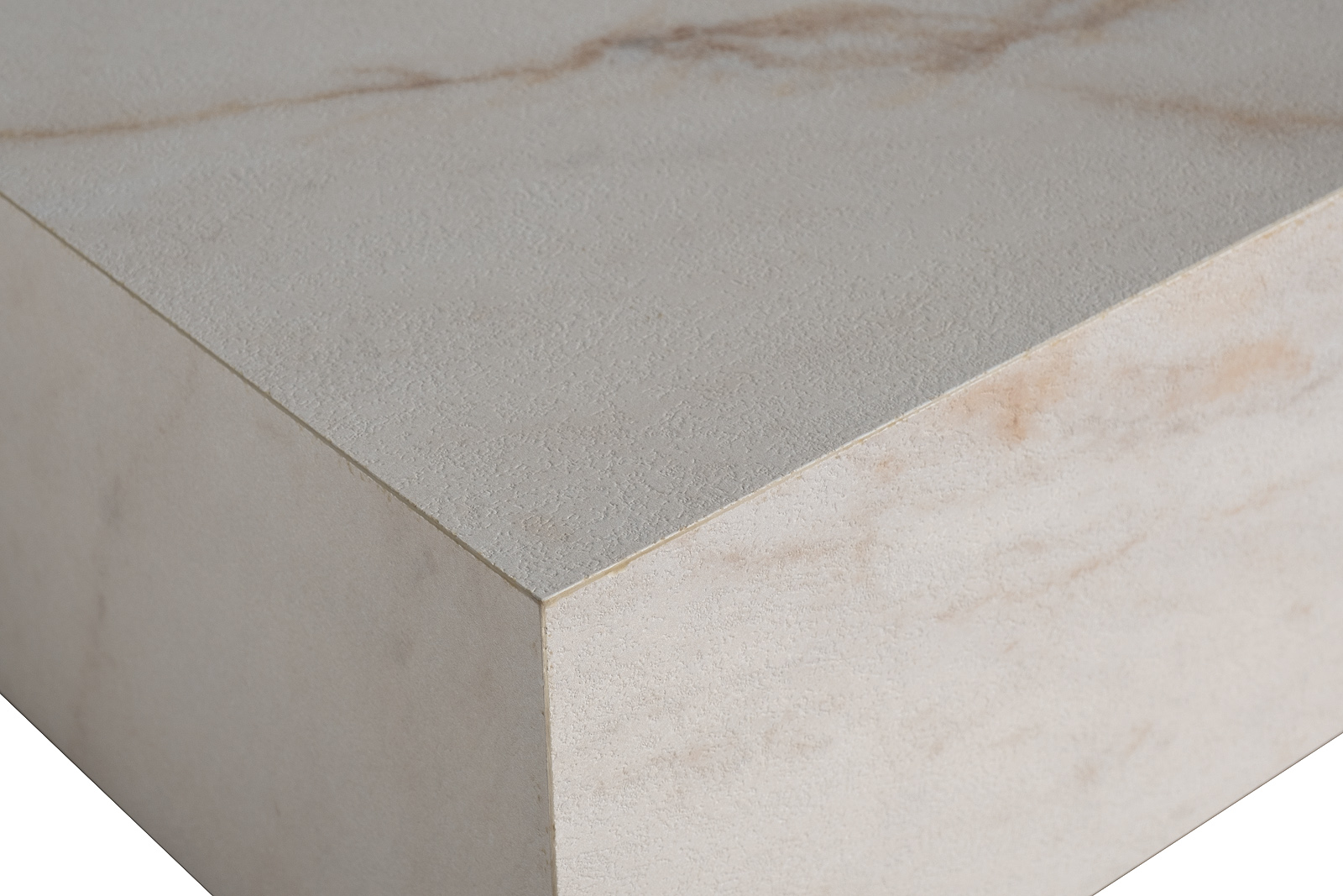 Простая форма этого журнального стола смотрится стильно благодаря облицовке из керамики под мрамор. Большая поверхность светлого тона притягивает взгляд и вместе с тем позволяет сервировать изысканную трапезу в зоне отдыха, расставить изящные интерьерные предметы, не боясь при этом повредить покрытие. Внутренний каркас изготовлен из МДФ, а основание - из нержавеющей стали.