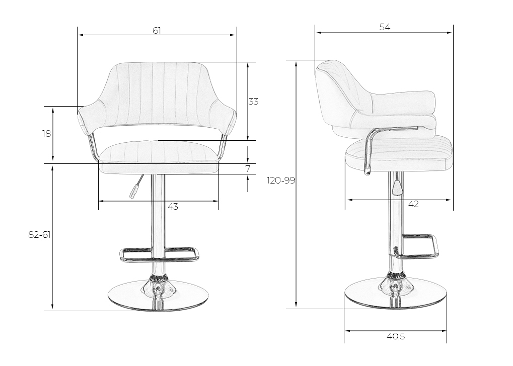 - Высота сиденья: 61 мм