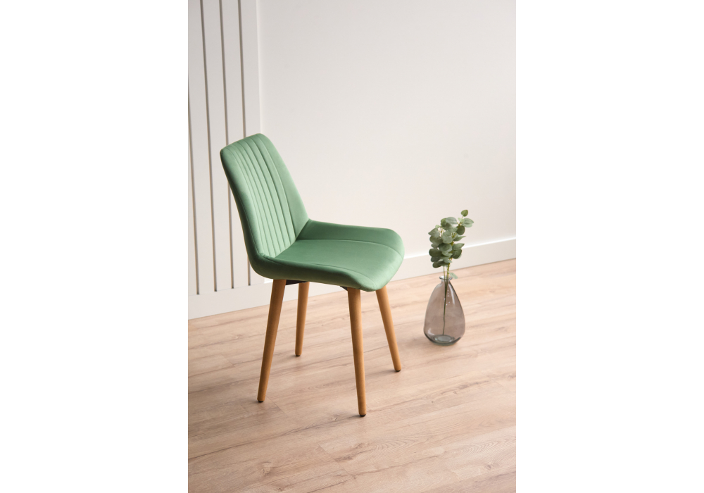 Материал каркаса - дерево; Материал сиденья - велюр; Материал обивки - велюр; Цвет ножек - натуральный; Ширина - 50; Глубина - 56; Высота - 82; Ширина сиденья - 47; Глубина сиденья - 42; Высота сиденья - 48;