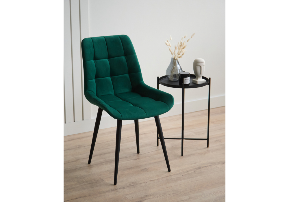 Материал каркаса - металл; Материал сиденья - велюр; Материал обивки - велюр; Цвет ножек - черный; Ширина - 50; Глубина - 60; Высота - 80; Ширина сиденья - 44; Глубина сиденья - 41; Высота сиденья - 48;