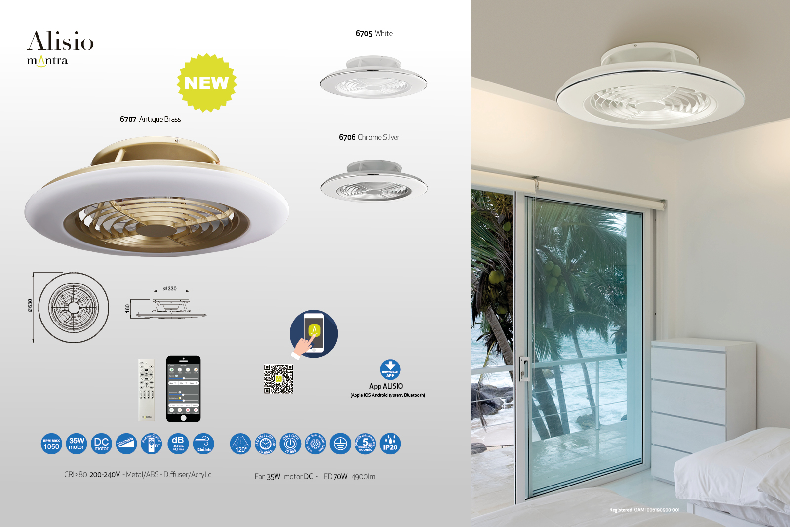 Купить "Светодиодная люстра-вентилятор Mantra Alisio 6706"
