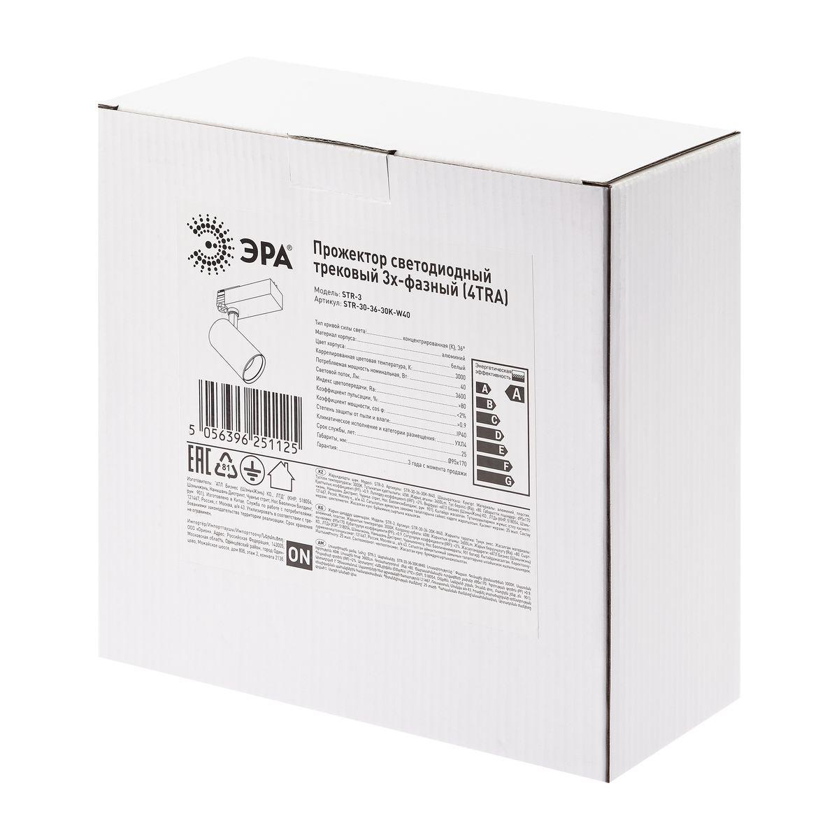 Купить "Трековый светодиодный светильник ЭРА SТR-30-36-30K-W40 Б0049774"