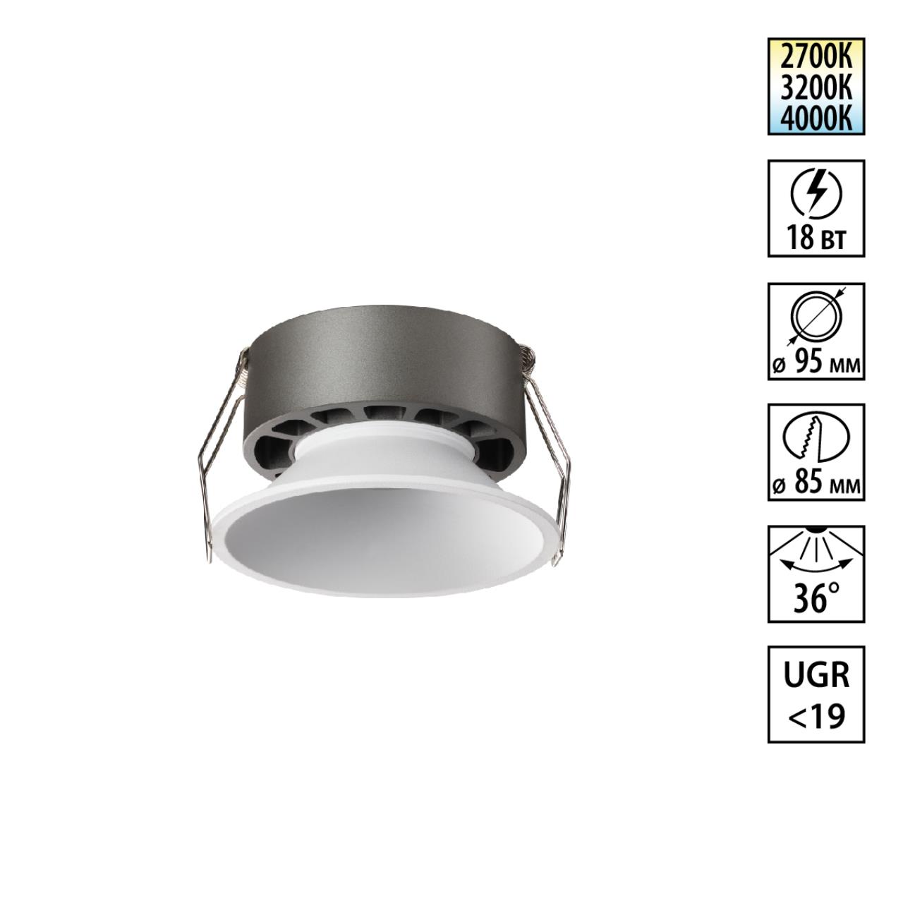 Встраиваемый светильник светодиодный с переключателем цветовой температуры Novotech NOVA 359854 белый в Нальчике