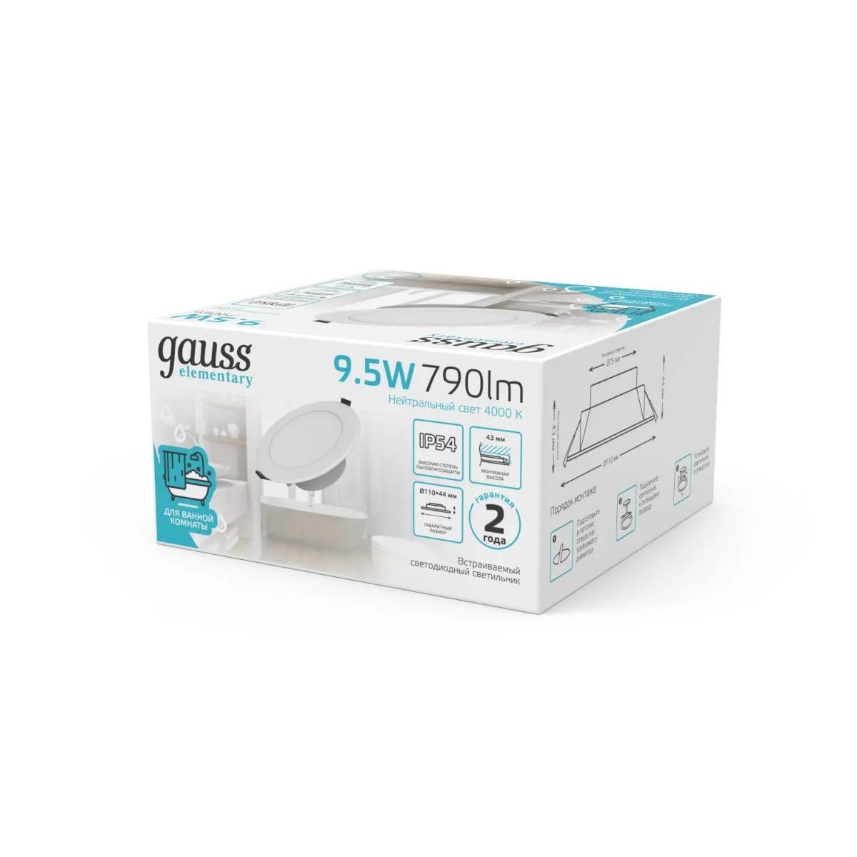 Купить "Встраиваемый светодиодный светильник Gauss Elementary Downlight 999420209"