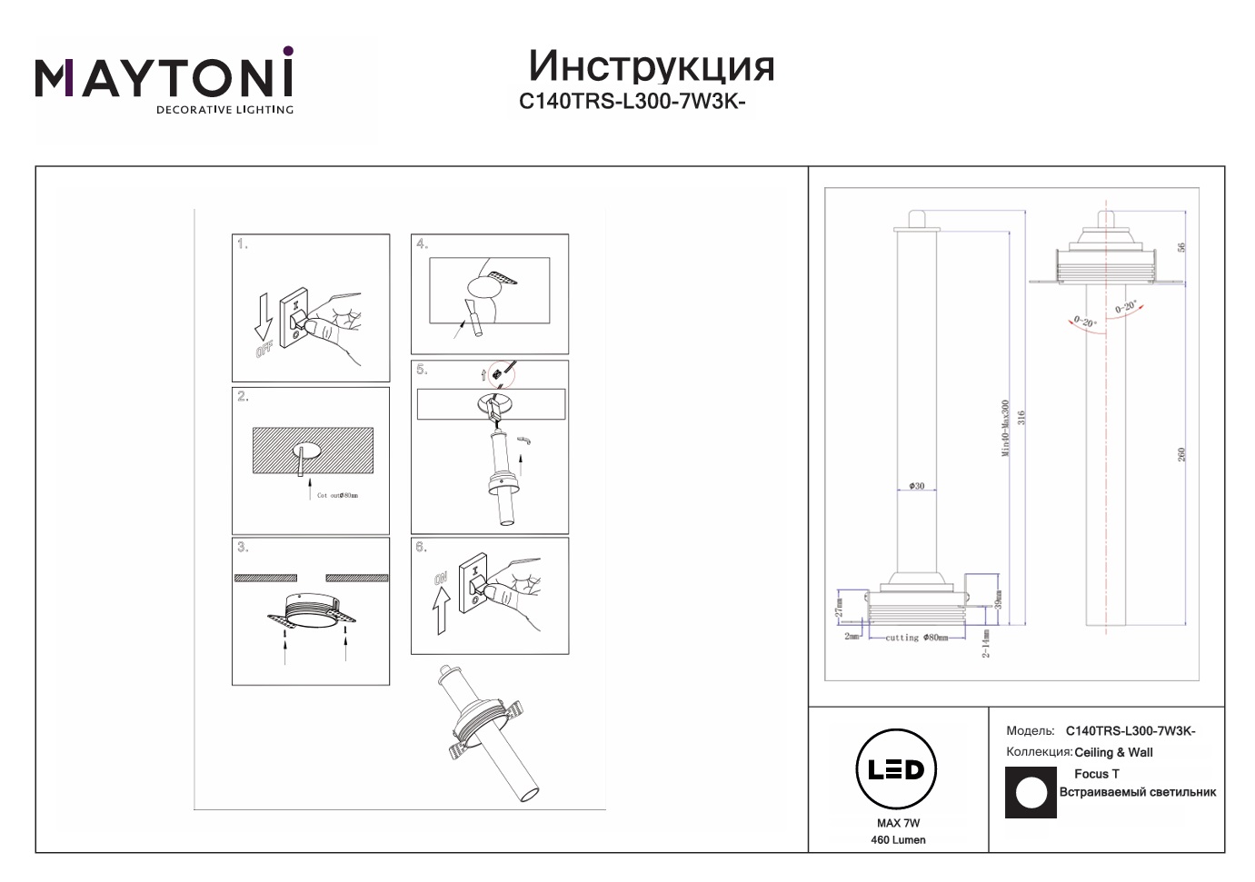 Данную модель C140TRS-L300-7W3K-BBS с быстрой доставкой спешите купить по цене 4 840 ₽ в магазине 220svet.ru