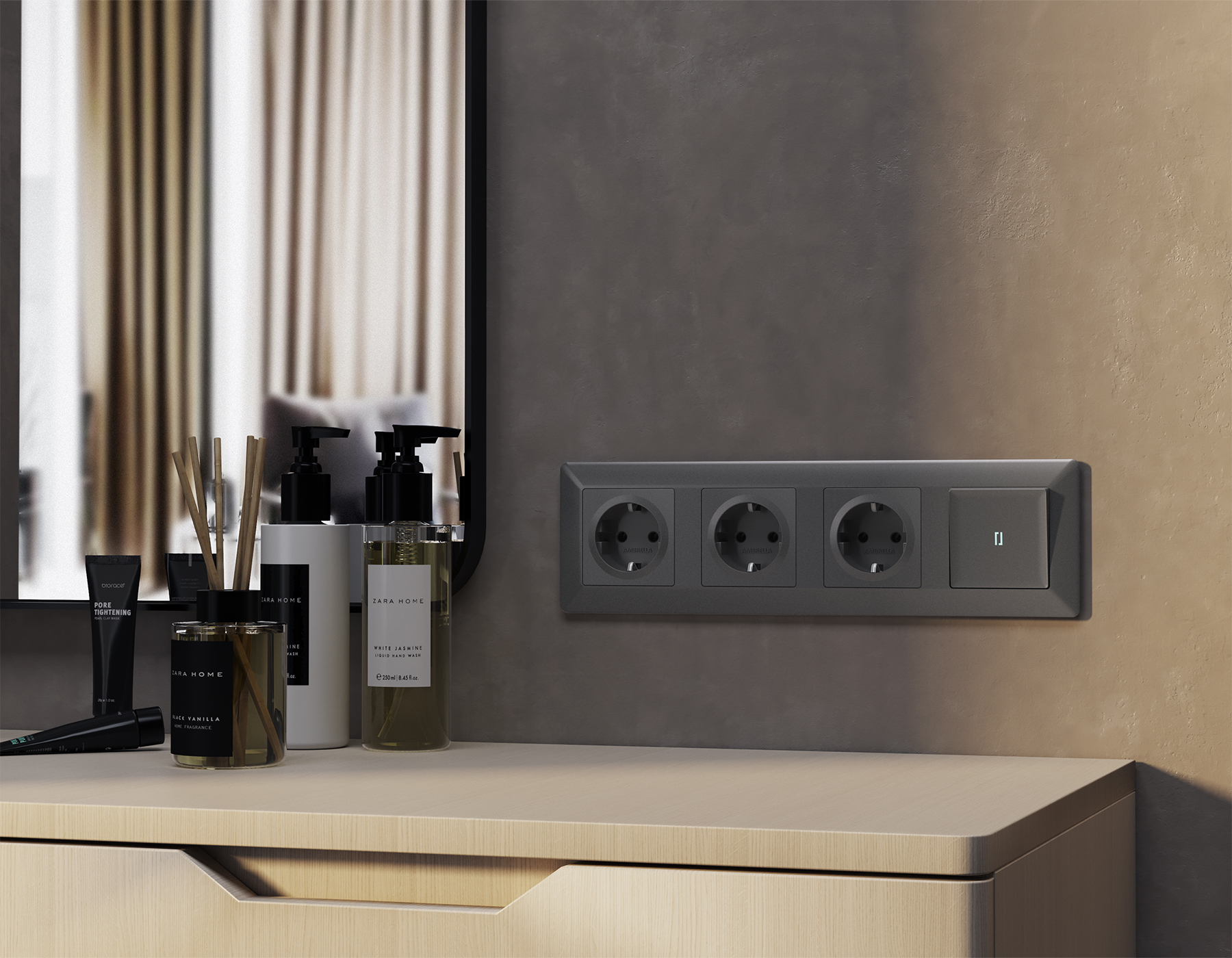 Многогранный ассортимент Ambrella Volt включает в себя механизмы, лицевые панели и рамки, а также комплекты, доступные в различных цветовых решениях. Продукция представлена в модульном исполнении, что позволяет гибко настраивать внешний вид и функциональность. Вам будет легко заменить лицевую панель, рамку или механизм, найдя идеальное сочетание цветов.